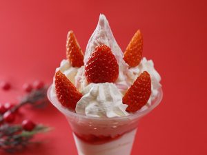 たくさんのいちごを贅沢に使ったご褒美パフェ。ソフトクリームとの掛け合わせの味わいをお楽しみください。